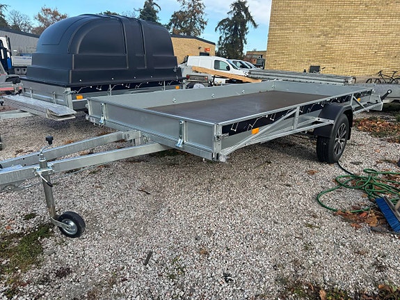 Kraftigt byggt släp från bk hengeren dom lastar allt från flertal skotrar till bilar