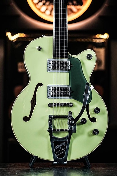 With the T3/B weve taken everything we love about the classic semi-hollowbody sound and applied signature Taylor design touches, led by proprietary pickups, to create an even more inspiring playing experience. Our standard setup features high-definition humbuckers, with optional vintage alnicos that respond with extra warmth. A three-way switch covers the full neck, neck/bridge, and full bridge configurations, while a coil-splitting application (pulling up the volume knob) transforms the humbuckers into single-coil pickups. Roll the tone knob to boost the mids and pull it up to activate another level of control that dials in mellow warmth without giving up clarity. The Bigsby vibrato tailpiece is paired with a roller bridge to give players smooth pitch control that makes vibrato bends fun to explore. The top is layered, figured maple, with several color/burst options: Natural (standard), Ruby Red Burst, Black, Orange, Tobacco Sunburst and Honey Sunburst. Nickel tuners match the sleek chrome tailpiece and pickup hardware.