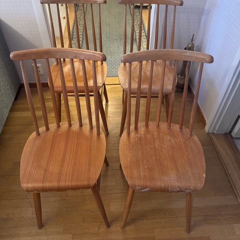 Fyra härliga pinnstolar. Lite olika men fina och stabila