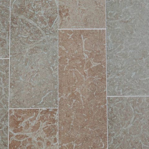 Kolmårdsmarmor. Slipade plattor av för golv, vägg och beklädnad. Sågade kanter och kalibrerad botten. Solid natursten: Detta är äkta svensk marmor (inte granitkeramik eller annan imitation).