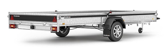 Professionell släpvagn för anläggnings- eller byggarbete, med låg tyngdpunkt för högre säkerhet och stabila köregenskaper. D-serien är ett pålitligt val vid transport av småmaskiner och smidig vid lastning och lossning. Vagnen på bilden kan vara extrautrustad.