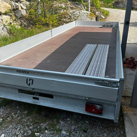 10" hjul 3 axlat totallängd släp 6575 mm totalvikt 3500 kg lastvikt 2650 kg lastlängd 5080 mm lastbredd 2010 mm Ramper med fack under golvet vinsch Reservhjul med hållare