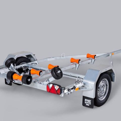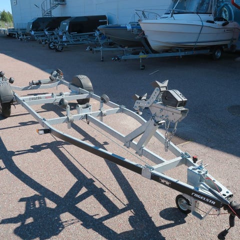Stabil bromsad båttrailer i galvaniserat stål.