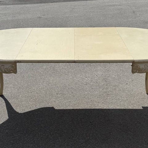 Mått: Bord: H 75,5, B 107, L 181 + 2 x 30,5 ( 242 cm) Stolar: H 101/47, B 53, SD 46 cm