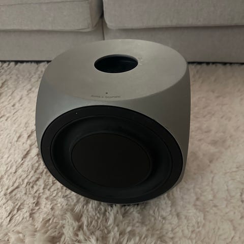 Bang & Olufsen Beolab 8000 i röt. Senaste versionen av Beolab 8000, med senaste Basuppdatering