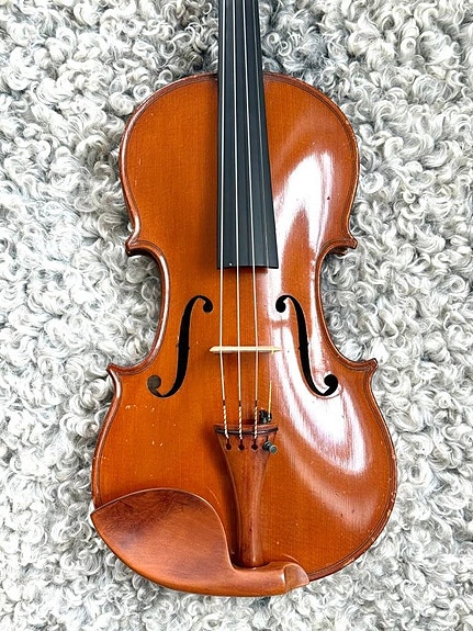 Underbart vacker och välbyggd kvalitetsfiol byggt av den kända Jean Baptiste Collin Mezin i Frankrike i 1926. Dessa instrument är eftertraktade och kända för sitt kvalitetshantverk och fina klang. Fiolen är i utomordentligt bra skick, vacker flammig lönn, mycket vacker snäcka med kantfärg, originella stämskruv i rosewood med perfekt glid, original signatur i botten vid hö f hål. I verkstaden har det gjorts slipning och inoljning av greppbrädan, nytt stall i bästa kvalitet, ny ljudpinne, nytt hakstöd, ny stränghållare, nya strängar och ordentlig klangjustering. Klangen i denna violinen är klar, ren, kraftfull, mycket jämn över strängarna, fin briljans som balanserar tonen väl. Passa på att samtidigt provspela flera andra premium instrument, och flera är på väg in. Välkommen!