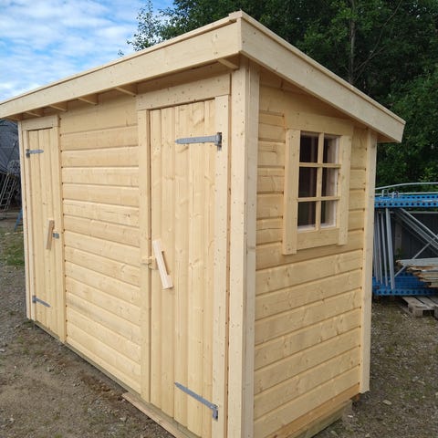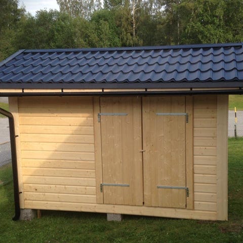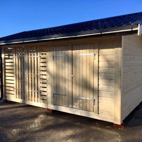 Friggebod / Förråd med timmerpanel 15m2 (5 x 3m) Byggd i sektioner = enkelt att montera.