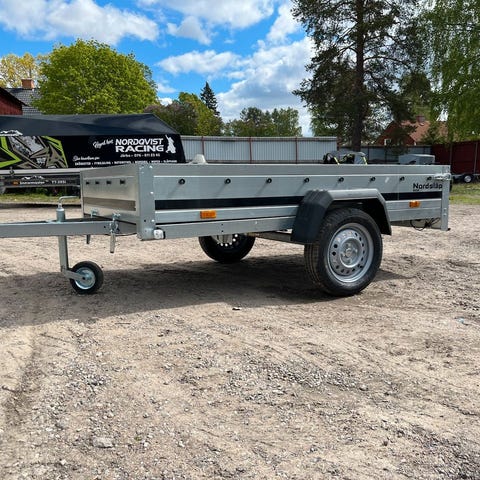 Prisvärd kvalitets släpvagn från Nordsläp! Finns i lager för omgående leverans. Obromsad med tipp Flakmått 264cm x 126cm Lastvikt 604kg Tjänstevikt 146kg Totalvikt 750kg Finansiering kan ordnas Pris 15.950:-