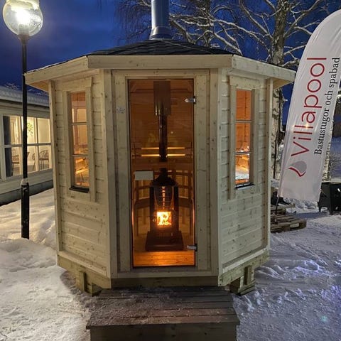 Välj till vedeldat system eller elektriskt bastuaggregat.