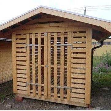 Kraftigt byggd vedbod, väl ventilerad 15m2. Dubbeldörr.
