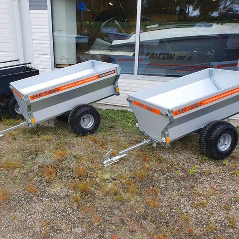 TerraTrailer 500 är en verkligt praktisk gårdsvagn, som är tillverkad av kvalitetskomponenter i Sverige. Den har hela fem års garanti! Flaket är tippbart, vilket underlättar avlastning av till exempel grus och jord. Främre och bakre gavel är fällbar/demonterbar för lastning av långt gods.