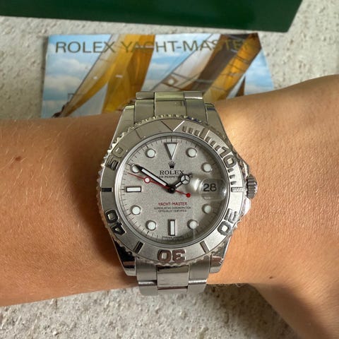 Med en rhodium urtavla och stållänk förblir denna Rolex Yacht-Master en tidlös klassiker med sitt otroliga hantverk. Utrustad med ett automatisk urverk, är denna klocka inte bara elegant, utan också funktionell och en livslång kamrat.