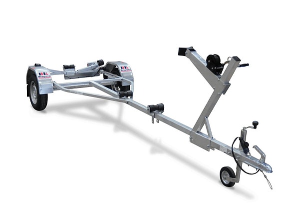 Båttrailern är designad för rotationsgjutna båtar och har skenor som ger optimalt stöd och skyddar båten under transport. Vagnen är utrustad med svängbara bakljus för enkel sjösättning.