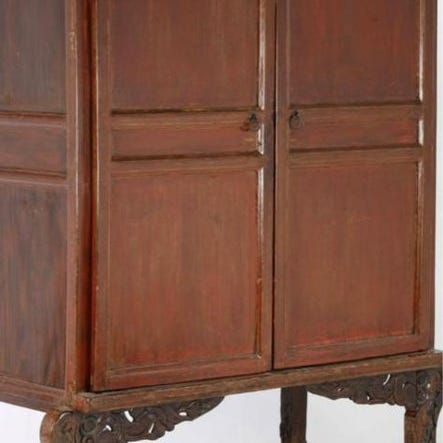 Karaktärsfullt och unikt skåp med snidade figurer och detaljerade motiv. Perfekt för den som vill ha en möbel med historia och personlighet.