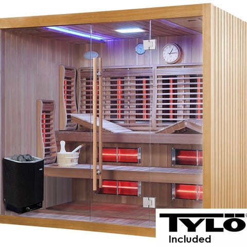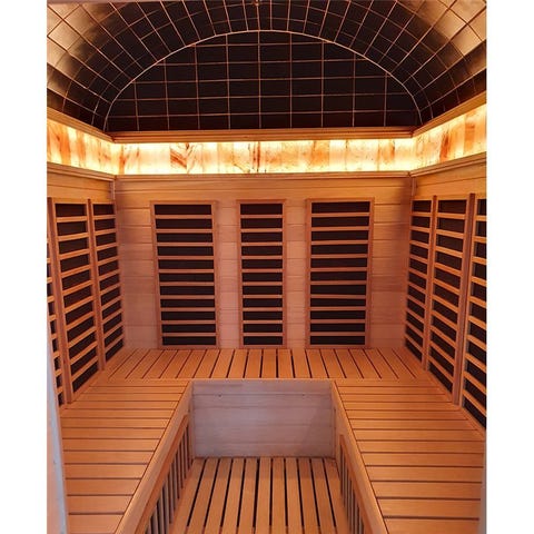 Styr din bastuupplevelse med lätthet genom den avancerade LCD-displayen på insidan. Justera temperaturen upp till 65 grader och ställ in timern upp till 90 minuter för en skräddarsydd session.