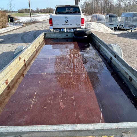 Lite använd. Släpet är i nyskick, använts för en eller ett par resor per år till racingbana.