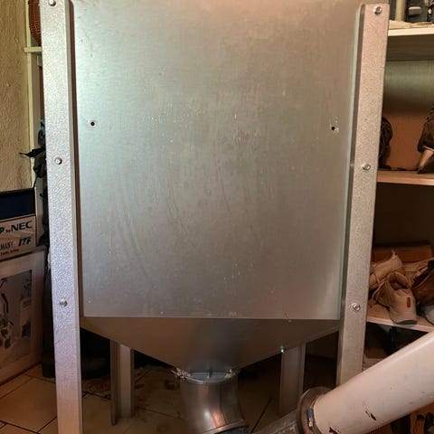 Mafa Mini är en 300 liters pelletsbehållare med vridbart skruvinlopp, tillverkad av galvaniserad plåt. Mått: 650x650x1230 mm. Den levereras omonterad och fungerar som ett mellanförråd för pellets. Perfekt för effektiv lagring av bränslepellets.