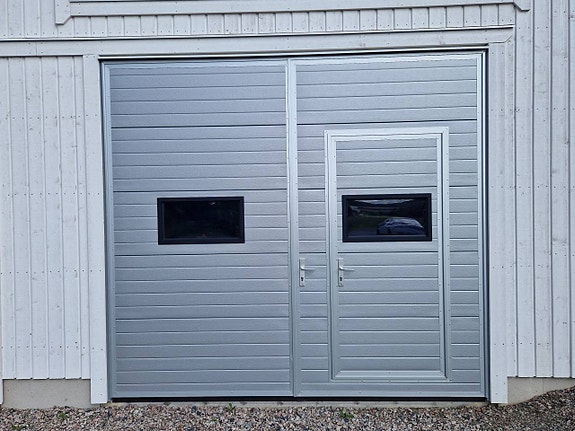 Denna port är klockren om ni saknar överhöjd som en garageport eller vikport behöver.