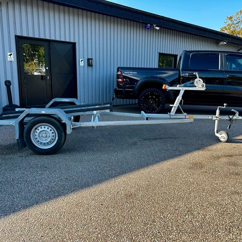 ”Storebro´n” av 4 m trailern. Denna är 55cm längre och passar för en tresitsig jetski. Lastvikten ligger på 576 kg. Trailerns stomme är varmgalvad svetsram. En trailer för professionellt bruk.