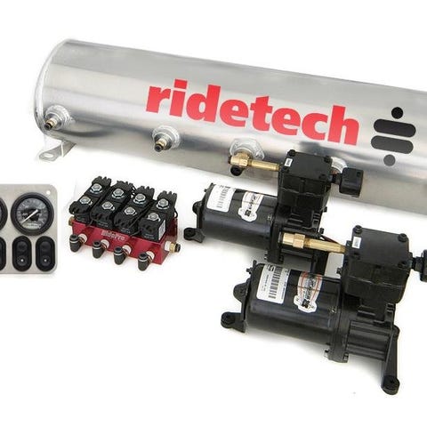 På lager har vi Ridetech kompletta kit av air-ride / luftfjädring i olika utförande, samt lösa delar som kompressorer, lufttankar, ventiler, bälgar, tryckvakter, manometer, fästen, slang, kopplingar mm