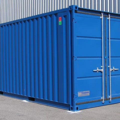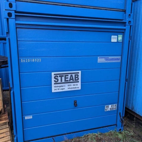 Förrådsmodul som kan förflyttas med truck(gaffelurtag), containerkran eller på lastväxlarram. Kan ställas tre styck på höjden om