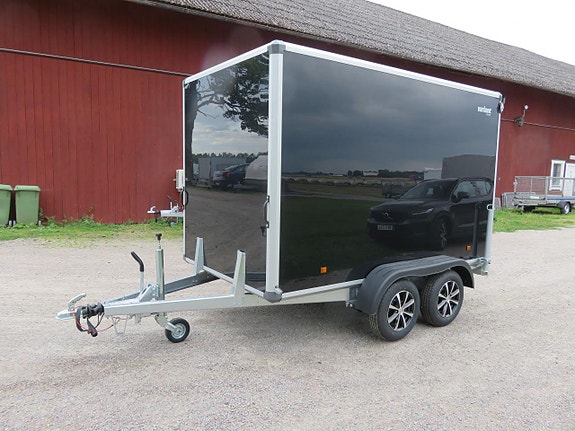 Kampanj! på Variant 2018P3 Black Edition, -2026 Års Modeller, Högbyggt släp, Kombitrailer Boggie, Med fällbara aluminium Sidolämmar, och avtagbara Hörnstolpar, Bromsad, Tot.vikt 2000kg, Lastvikt 1550kg, 6st Invändiga Bindöglor, Flakmått 315x175cm, Lämhöjd 35cm, Med Editionmodellen får du snygga svarta lämmar, svarta fälgar och en praktisk verktygslåda monterad under en av lämmarna. Dessutom med LED-belysning, Pris =45900:- , Pris inkl. Moms.