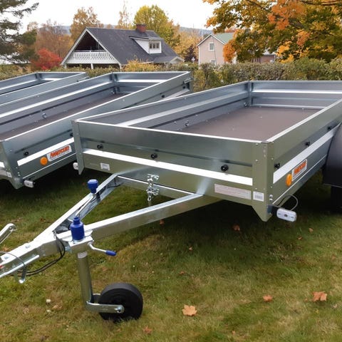 Allt från små Eu släpvagnar som kostar 5995kr till stora biltrailer, multisläp, båttrailer och stor skotervagn med aluminiumkåpa