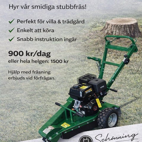 Vi har uthyrning av både flismaskin och stubbfräs.