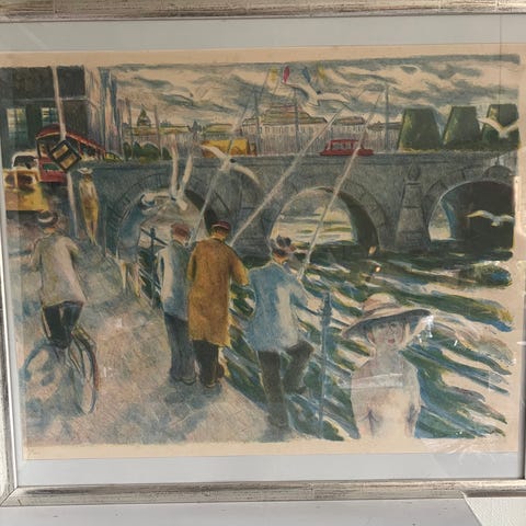 Olle Krantz (1906-1999), Brudfärd, signerat tryck