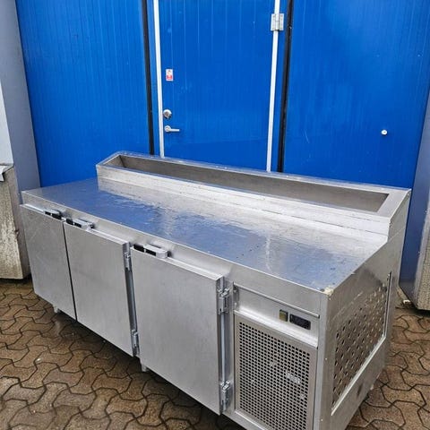 Arbetsbänk, pizzaplåtar vagn,pomesvärmare,räfflad grill,vatt