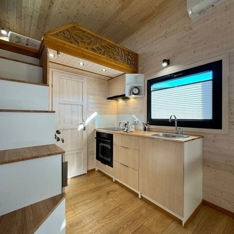 Kliv in i "Moon" – ditt drömmiga mikroboende som omtolkar begreppet compact living. Med en imponerande längd på 6 meter, en bredd på 2,50 meter och en höjd på 2,85 meter blir detta en förtrollande plats för den moderna nomaden som söker både elegans och äventyr.