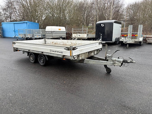 Släpen på bilderna är en 5,5x2.1m 3500kg med manuell vinsch och hydraulisk tilt.