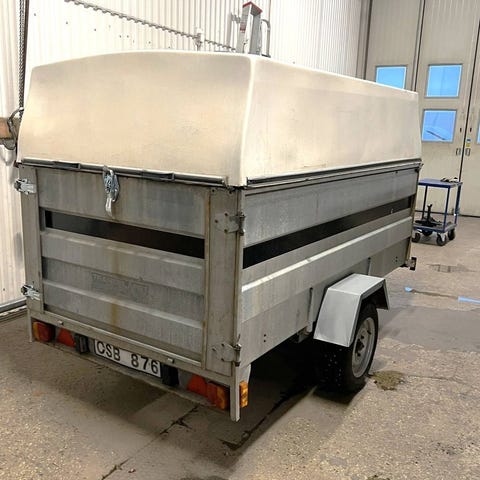 En mångsidig och säker släpvagn med kraftig Jaxalkåpa i glasfiber – perfekt för dig som vill skydda lasten från väder, vind och nyfikna blickar. Tippbart flak och avtagbara lämmar ger extra flexibilitet.