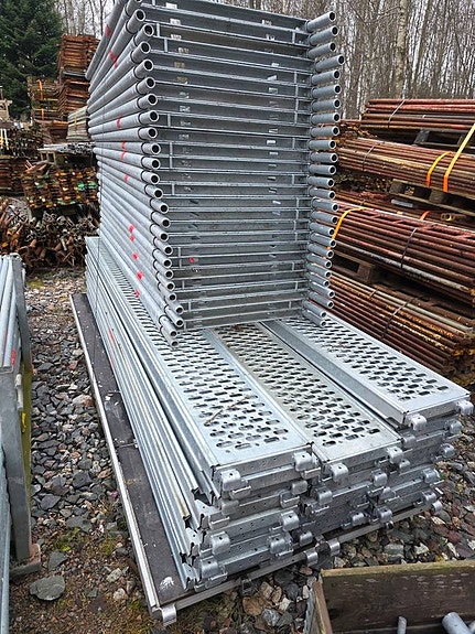 Begagnad Haki/Unihak ställning 9m bred Planhöjd på 3, 5m samt 8m alternativ att man justerar var 0,5m enligt önskemål.Arbetshöjd som max på gaveln är 10m(det du når) Obs bilder visar lagermaterial se nedan vad som ingår i priset. 8 Skruvfötter 800mm Galv20 Spira 3m Målad20 Längdbalk 3m Målad7 Dubbelräcke 3m Målad3 Diagonalstag Målad24 Kortbom / Erb 1,2m6 Väggfästen 0,5m 6 Fasta Kopplingar 6 Öglor 42 Lättviktatrall Glasfiber / Plast Underhållsfritt Vikt per st 10kg1 Materialhäck röd.Vikt 1550kgPris 37200 + moms ( 46500 ink moms)Frakt från 3980 + moms (skicka ditt postnummer för att beräkna mer exakt)Hämtplats Örebro Marieberg Lastare för lastning finns på platsTelefon 0730524406Mail: Mosjostallningar_gmail.comBehöver du ett mindre paket eller ännu större? Finns mycket mer ställning på lager som kan köpas till enligt önskemål, även styckvis.Hakiställning byggnadsställning murrarställning fasadställning haki fasadställning unihak alhak Byggställning
