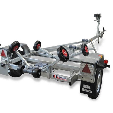 Båttrailer med självjusterande vagga bak och manuellt justerbara stöd fram för maximalt stöd av båten. Ramen är helsvetsad och varmförzinkad. Stålskärmar som tål 200 kg gör det lätt att ta sig in i båten när den är på land. Svetsade surrningsfästen för bra bandning av båten under transport. Högt monterade ljus som inte får tas bort vid sjösättning. En lång vagga är tillval och är avsedd för båtar med förkortad köl.