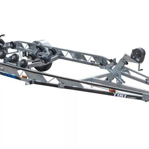 Kraftfull dubbelram och tippvagga med 16 kompakta hjul på 305 cm i diameter kombinerat med 2 självjusterande tippvaggor framtill säkerställer maximalt stöd av båten. Kraftfull vinsch och vinschtorn samt kraftfullt noshjul och 14 tums hjul.