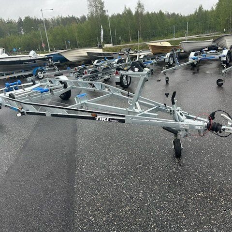 Stabil bromsad Tiki båttrailer byggd i galvaniserat stål.