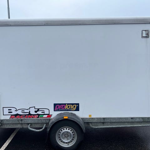 Släpvagn med öppningsbar sida och gott om förvaring.