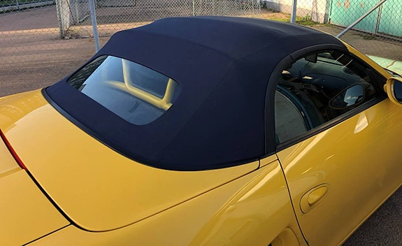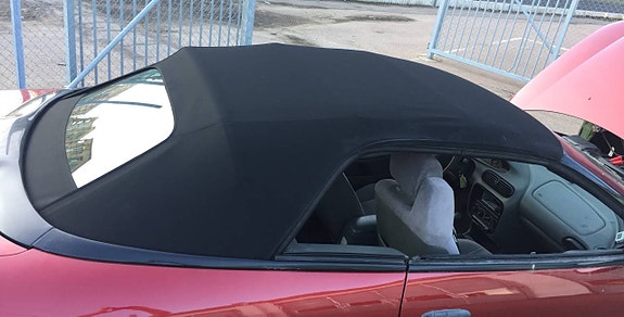 Svart vinyl sufflet, originalmaterial, med fast plastruta, ej som original. Förenklad konstruktion (årsmodellerna 1989-97 av MX-5 har öppningsbar plastruta original, 1998-05 har glasruta original ) Dessa suffletter hittar du i annan annons