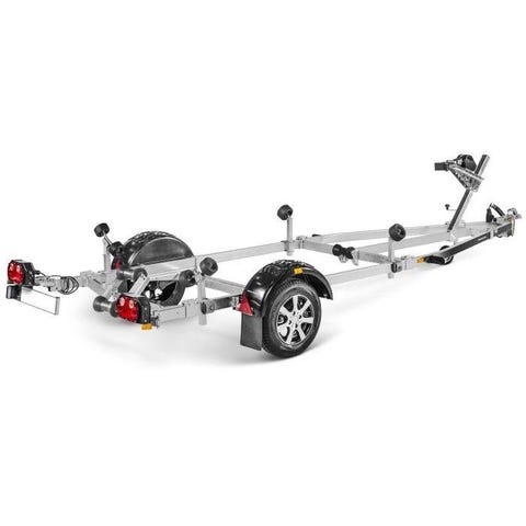 Obromsad trailer för mindre båtar upp till 18 fot. Utrustad med V-formad dragstång och väldigt goda köregenskaper. X-line-kvalitetsrullar med låg inverkan på båtens skrov.