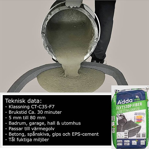 Flytspackel avjämningsmassa 20 kg. Fallbyggnad till badrum