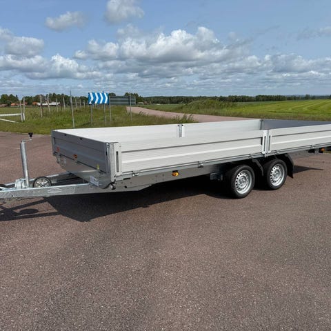 Universal finns i 5 & 6 m längder, 2 eller 3 axlar. Med Plywood eller aluminiumflak.
