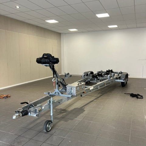 Demo, dubbelaxlad och bromsad trailer från 2021, för båtar upp till 7,8 m. Utrustad med V-format, svetsat och förstärkt chassi och väldigt goda köregenskaper. Dubbla självjusterande vaggor som automatiskt anpassar sig till båtens skrov. Varmgalvaniserat chassi för lång hållbarhet. Trailern har använts några gånger på vår marina.