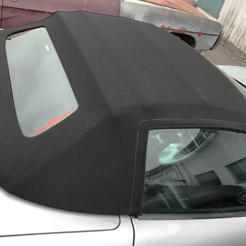 Svart tyg sufflet, originalmaterial , med glasruta defroster som original.