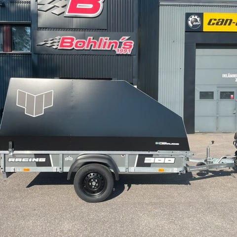 Racing 300Rb är ett starkt och smidigt släp med 150 cm flakbredd, Racing 300Rb är bromsad med 1000kg totalvikt.
