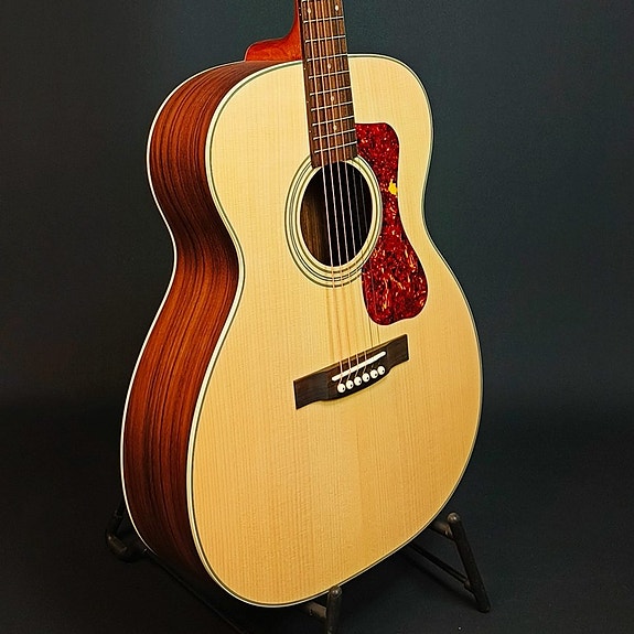 Traditionell Slope shoulder design med solitt granlock och opengear stämskruvar. Snygg gitarr med mjuk och härlig klang.