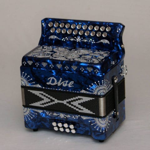 Modellen finns i både A-D, G-C, F-Bb, E-A & D-G och går att få i färger samt att det kommit en ny leverans med spel i lite mörkare design med Dise-namnet ingraverat i svart med silverkontur och glittersvart grilltyg och blanksvart bälgdekor.