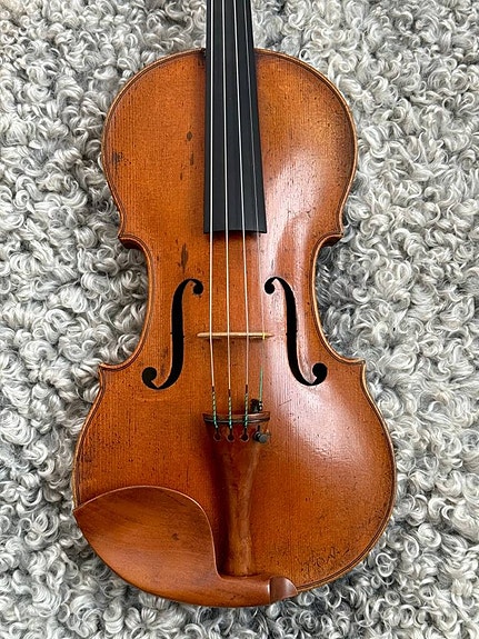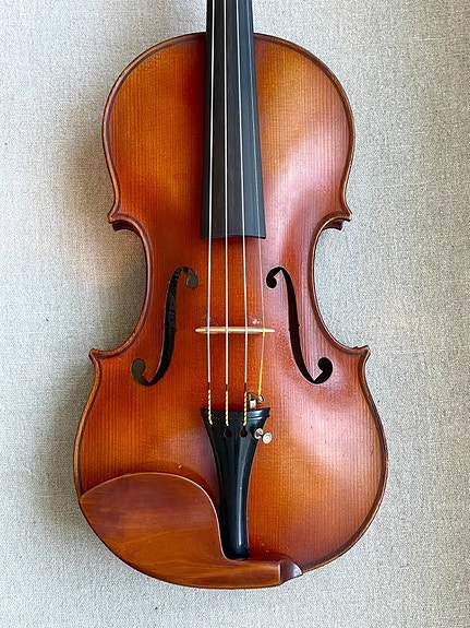 En riktigt bra och vacker fransk viola av erkända Rene Morizot (1917-2001) från runt 1960-70 talet. Han var bland annat lärare på fiolbyggare utbildningen i Mirecourt från 1969-82. Violan har används mycket sparsamt genom åren. Mycket fina detaljer som hörn, kantarbete och f-hål, originella stämskruv med fin glid. Stämplad och numrerad på insidan.Detta fina exemplaret har renoverats mycket varsamt och nyligen fått en uppfräschning med nya strängar, stränghållare, nytt stall, hakstöd och perfekt klangjustering. Storlek 40.0 och stränglängd 36.0, slank hals och mycket bekväm att spela. Violan har en klar och öppen, kraftfull klang med stor C. Härlig att spela på när man vill ha lite kraft och volym. Titta gärna in på hemsidan för att se alla fina nyrenoverade instrument i olika prisklasser. Välkommen!