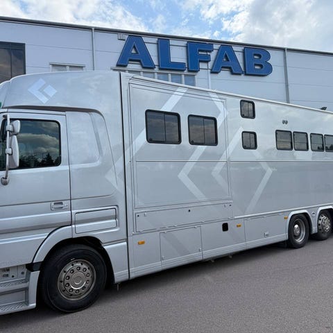 Hästlastbil med utskjut och uppskjut byggd på Volvo FH
