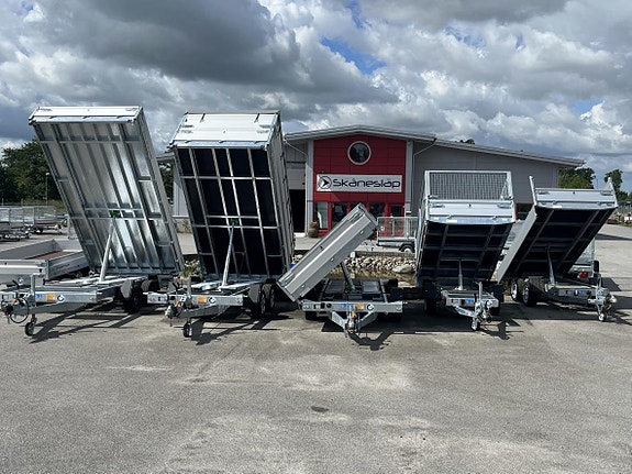 Släpen har fällbara lämmar runt om vilket gör den lätt att lasta från sidan